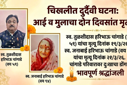 चिखली (प्रतिनिधी) – चिखली शहरातील चांगाडे परिवारावर अत्यंत दुर्दैवी प्रसंग ओढावला असून, अवघ्या दोन दिवसांच्या अंतरात आई आणि मुलाचा मृत्यू झाल्याने संपूर्ण परिसरात हळहळ व्यक्त केली जात आहे. या घटनेमुळे...