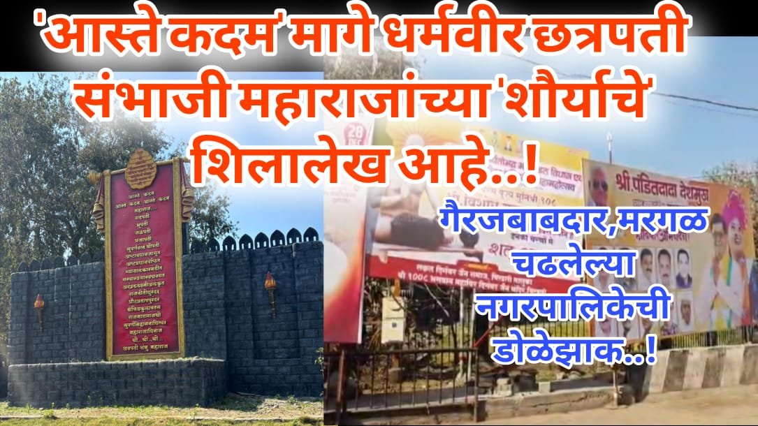 चिखली:- चिखली शहरातील नगरपरिषद निवडणुकाच्या तोफा नुकत्याच थंडावल्या.यामध्ये विविध पक्षाचे उमेदवार निवडून आले आणि शहर भर शुभेच्छा फलक लावण्यास सुरुवात झाली. प्रत्येक विजयी उमेदवाराला शुभेच्छा मिळाव्याही त्यात दुमत नाही. परन्तु बेशिस्तिची हद्द अशी झाली की लाखो रुपये निधी खर्च करून नगरपालिके ने छत्रपती शिवाजी महाराज उद्यान(खंडाळा चौक) येथे धर्मवीर छत्रपती संभाजी महाराज यांच्या व्यक्तिमत्वा बद्दल ,शौर्या बद्दल अतिशय देखणे आणि सुंदर शिलालेख बनवले आहे.ज्या शिलालेखातील शब्दरचना वाचल्यास मावळ्यांच्या धमन्यामध्ये रक्त सळसळत त्याच छत्रपती संभाजी महाराज शिलालेखाच्या पुढे नेत्यांचे बॅनर लावले आहे.त्यामुळे हे शिलालेख पुर्णपणे झाकले आहे.विजयाच्या जल्लोषात नेत्यांना आणि त्यांच्या कार्यकर्त्यांना धर्मवीर संभाजी महाराज यांच्या मान सन्मानाचा ही विसर पडला.