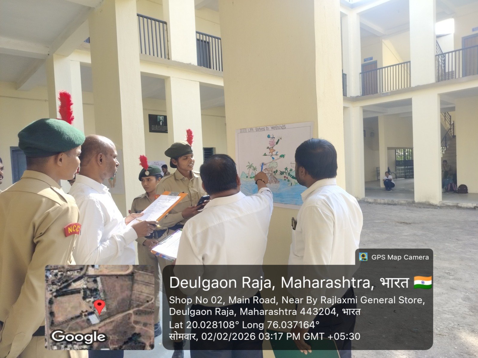 या निमित्ताने आयोजित पोस्टर सादरीकरण स्पर्धेत विद्यार्थ्यांनी पाणथळ भूमी संरक्षण, पर्यावरण संतुलन व जैवविविधता या विषयांवर पोस्टर्स सादर करून जनजागृती केली. प्रा. डी. एम. शिंबरे, डॉ. अरविंद कानवटे व डॉ. अमोल जाधव यांनी परीक्षक म्हणून काम पाहिले. स्पर्धेत प्रथम क्रमांक कॅडेट अजय सांगळे, द्वितीय क्रमांक विनय बोंडे व तृतीय क्रमांक कॅडेट अर्जुन वाघमारे यांनी पटकावला.