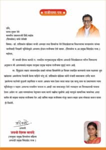 याच पार्श्वभूमीवर शिवसेना शिंदे गटाचे नेते व माजी आमदार डॉ. शशिकांत खेडेकर यांच्या जातीयवादी विखारी भूमिकेमुळे अस्वस्थ झाल्याचे राजीनामा पत्रात विदित करीत सौ. जयश्री दीपक कायंदे यांनी राजीनामा मंजूर करुन आपला श्वास मोकळा करण्याचे राजीनामा पत्र माजी मुख्यमंत्री एकनाथ शिंदे यांच्याकडे पाठविले आहे.