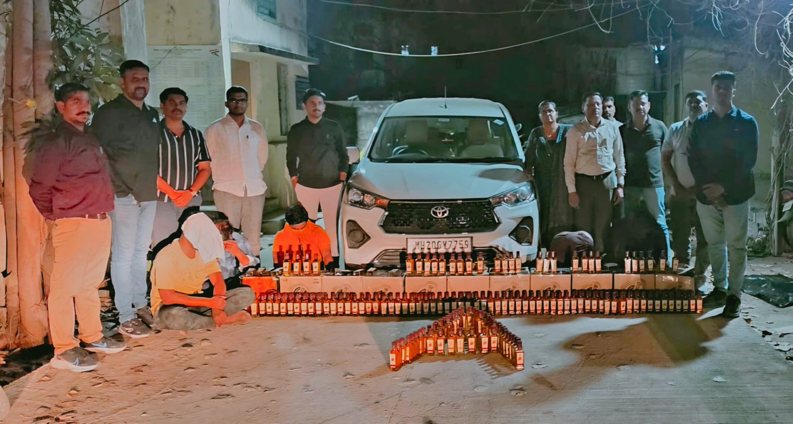 या कारवाईत रॉयल स्टॅग व्हिस्कीच्या ५२८ बाटल्या आणि पांढऱ्या रंगाची टोयोटा रुमिओन कार असा एकूण १०,४२,००० रुपयांचा मुद्देमाल जप्त करण्यात आला.