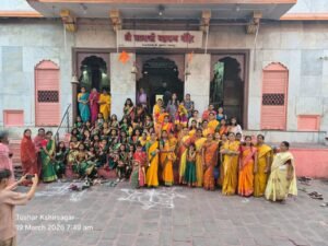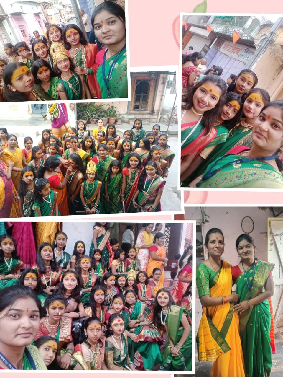 यामध्ये पल्लवी वाजपे, रूपाली भैय्ये, शोभा पुजारी मॅडम, किर्ती देशपांडे, श्रेया मेव्हुणकर, रेणुका गुंडे, दिपाली पुजारी, दिपाली शिराळकर प्रतिक्षा कुलकर्णी/ देवउपाध्ये यांचे सहकार्याने मराठी नववर्षाच्या स्वागत करण्यात आले बालाजी महाराज मंदिर परिसर दणाणून गेला.