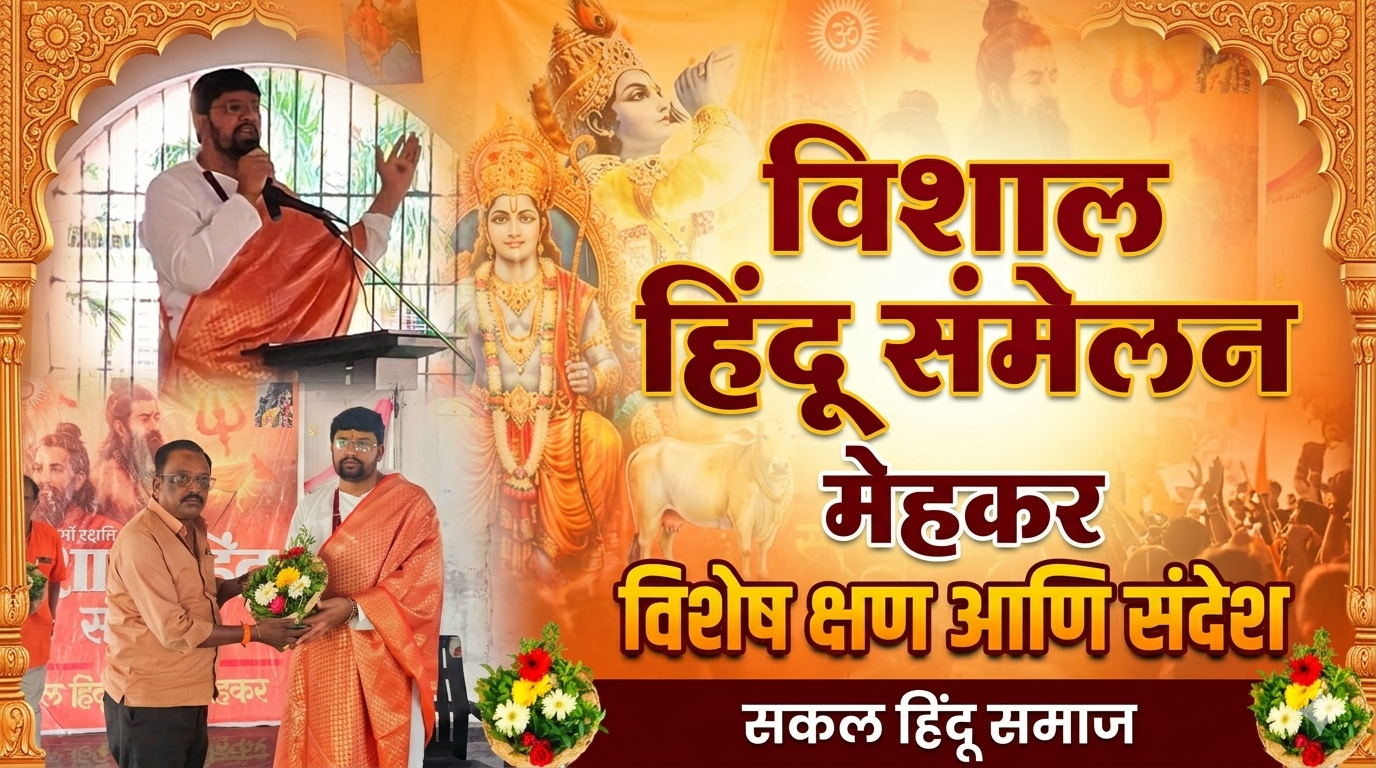 मेहकर (जि. बुलढाणा) – स्वामी समर्थ केंद्र, श्री राम नगर येथे रविवार, दिनांक २२ मार्च २०२६ रोजी सायंकाळी ४.०० ते ६.०० या वेळेत आयोजित विशाल हिंदू संमेलन अत्यंत उत्साहपूर्ण, प्रेरणादायी व भक्तिमय वातावरणात संपन्न झाले.