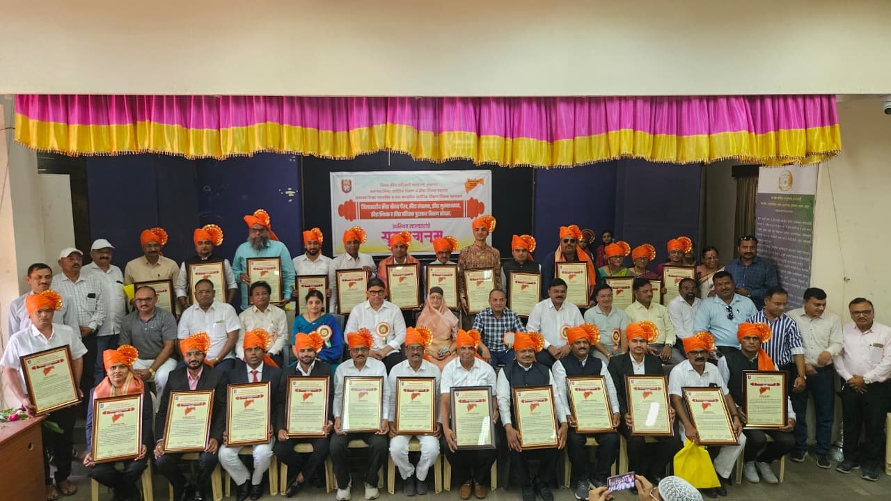 *जिल्हास्तरीय आदर्श क्रीडा शिक्षक पुरस्कार* स्वप्निल यशवंत पाटील (शांती निकेतन विद्या मंदिर, अमळनेर)शेख आरीफ शेख बाबुलाल (डॉ.उल्हास पाटील इंग्लिश मिडीयम स्कूल, भुसावळ) अरुणसिंग कल्याणसिंग राजपूत (बबनबाई जवरीलाल हिरण माध्य. व उच्च माध्य. विद्यालय कजगाव, भडगाव) श्री.जगदीश भटू जाधव (विद्या भारती माध्यमिक विद्यालय विरवाडे, चोपडा) श्री.दिनकर नाना पाटील (इंदिरा गांधी माध्य. व उच्च माध्य.विद्यालय, धरणगाव) श्री.अमोल प्रतापसिंग पाटील डॉ. काकासाहेब पूर्णपात्रे माध्य. विद्यालय (चाळीसगाव) श्री.युसुबखान महम्मद ह्यातखान (अँग्लो उर्दू हायस्कूल व ज्युनि. कॉलेज,एरंडोल) श्री.दिनेश दामू सोनिस (बोहरा सेंट्रल स्कूल,पारोळा) समीर विष्णू घोडेस्वार (इंदिराबाई ललवाणी माध्यमिक व उच्च माध्य. विद्यालय, जामनेर) संदीप शामराव कांडेलकर (मंजाबाई महादू नारखेडे विद्यालय, रुईखेडे, मुक्ताईनगर) योगेश गोवर्धन कोळी (प्रभात विद्यालय हिंगोणे, यावल) श्रीकांत नामदेव महाजन (सरदार वल्लभभाई पटेल विद्यालय, ऐनपूर, रावेर) क्षितीज संजीवकुमार सोनवणे (सि.रा.चौधरी हायस्कूल, किनोद, जळगाव) सुभाष रामदास राठोड (माध्यमिक विद्यालय, घुसर्डी, पाचोरा) जितेंद्र शांतीलाल ओस्तवाल (कला,वाणिज्य व विज्ञान महाविद्यालय, धरणगाव) सरस्वती प्रकाश पाटील (श्रीराम माध्यमिक विद्यालय, मेहरूण, जळगाव) विजया प्रमोद चौधरी (सिताबाई गणपत भंगाळे माध्य. विद्यालय, जळगाव) चारुशिला नंदू पाटील (सेंट लॉरेन्स हायस्कूल, जळगाव) सुप्रिया पांडूरंग पाटील (शासकीय माध्य. व उच्च माध्य. आश्रमशाळा, वाघझिरा, यावल) संजीव पंडित चौधरी (धनाजी नाना विद्यालय, खिरोदा, रावेर) यांना शाल, श्रीफळ, सन्मानपत्र, प्रमाणपत्र देऊन सन्मानित करण्यात आले. कार्यक्रमाच्या यशस्वी आयोजनासाठी डॉ. रणजीत पाटील, प्रा.हरीश शेळके,कांचन नारखेडे, समिधा सोवनी, रिना पाटील, योगेश सोनवणे, सचिन महाजन, निलेश पाटील, राहुल साळुंखे, सचिन सूर्यवंशी, सुनिल वाघ,अनिल चव्हाण, संदीप पवार, देविदास महाजन, जितेंद्र शिंदे, जितेंद्र फिरके, अजय काशीद यांचे अनमोल सहकार्य लाभले.