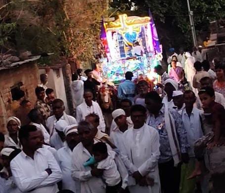सायंकाळी सहा वाजता गावातून भव्य मिरवणूक काढण्यात आली. ढोल-ताशांच्या गजरात, घोषणाबाजीत आणि विविध सजवलेल्या वाहनांसह मिरवणूक मोठ्या उत्साहात पार पडली. महिलांसह युवक-युवती, ज्येष्ठ नागरिक आणि लहान मुले मोठ्या संख्येने सहभागी झाली होती. संपूर्ण गावात उत्सवाचे वातावरण निर्माण झाले होते.