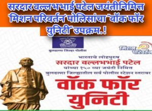 देऊळगाव राजा / (लोकमहाराष्ट्र वृत्तसेवा):-देशाचे लोह पुरुष म्हणून ओळखल्या जाणाऱ्या सरदार वल्लभभाई पटेल यांच्या जयंतीनिमित्त दिनांक ३१ ऑक्टोबर रोजी “राष्ट्रीय एकता दिन” म्हणून साजरा करण्यात येतो. या पार्श्वभूमीवर बुलढाणा जिल्ह्यातील पोलीस प्रशासनाच्या वतीने सर्व पोलीस स्टेशन स्तरावर ‘वॉक फॉर युनिटी’ हा विशेष उपक्रम राबविण्यात येणार आहे. या उपक्रमाचा उद्देश समाजामध्ये राष्ट्रीय एकता, भाईचारा आणि सामंजस्याचा संदेश पोहोचविणे असा असून, नागरिकांनी मोठ्या संख्येने या उपक्रमात सहभागी व्हावे, असे