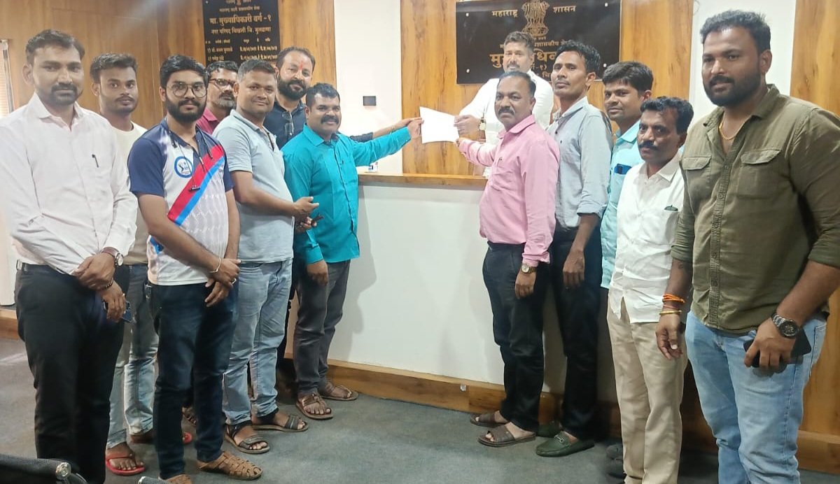 संभाजीनगर रस्त्यावर स्पीड ब्रेकर बसविणे व रस्त्यास ‘लोकशाहीर अण्णाभाऊ साठे मार्ग’ असे नांव देण्याची मागणी — वंचित बहुजन आघाडीचे निवेदन नगरपरिषदेपुढे