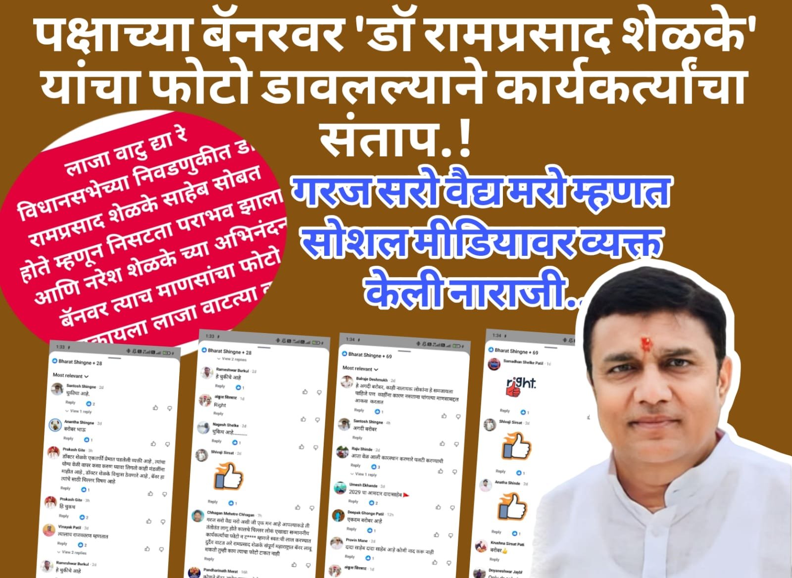 “गरज सरो वैद्य मरो अशी जी एक म्हण आहे आपल्याकडे ती तंतोतंत लागू होते. कालचे चिल्लर लोकं एखाद्या सन्माननीय कार्यकर्त्याचा फोटो न टाकता, म्हणजे स्वतःश्रेष्ठ करण्यात दुर्दैव वाटत. रामप्रसाद शेळके संपूर्ण महाराष्ट्रात बॅनर लावू शकतो तुम्ही काय त्याचा फोटो टाकत नाही,”